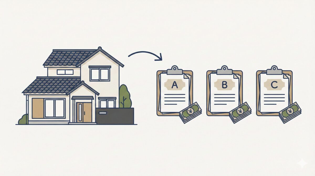| 項目 | 共有持分プラン (リノベ負担分を所有するプラン) | 貸付契約プラン (親にお金を貸すプラン) | 使用貸借契約プラン (無償で住まわせてもらうプラン) |